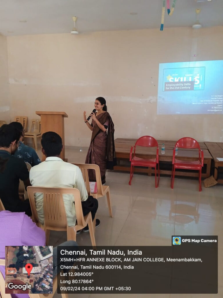 A comprehensive session on Employability Skills was conducted for the students of the Department of Tourism and Travel Management at Agurchand Manmull Jain College, Chennai, aimed at equipping them with essential 21st-century career competencies.