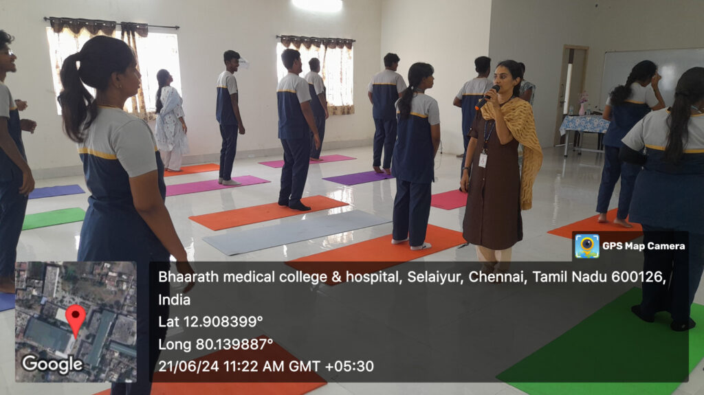 Bharath Medical Campus enthusiastically celebrated the International Day of Yoga 2024, embracing the global initiative to promote physical, mental, and spiritual well-being through yoga. The session emphasised the importance of incorporating yoga into daily life to enhance overall health, reduce stress, and improve lifestyle quality.